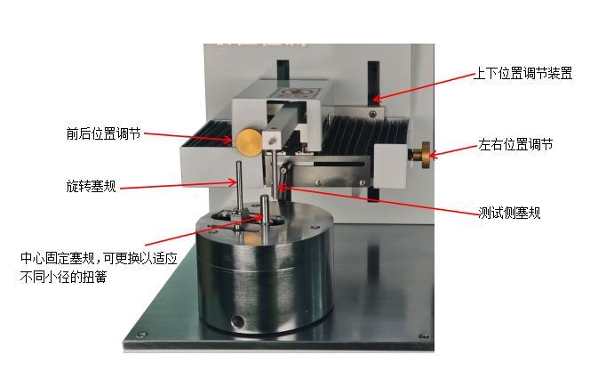 该设备专为扭簧扭矩测试而设计。搭配不同的塞规,可进行不同规格的扭簧扭矩测试。